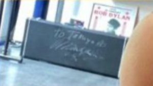 確認できるのはレディー・ガガの名盤(おそらくサイン入り?)と、To Takuya (拓哉へ)と書かれたギターのハードケースのような物。