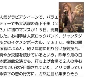 記事には2年前(2003年)に知人の紹介で知り合い意気投合し交際に発展し、それから森下千里さんはJanne Da Arcのライブへ足を運ぶことが増え、打ち上げにも参加するようになり、やがて交際、その事実は周知の承知であるとのこと。